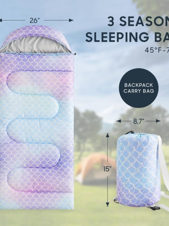 - Ultralight for backpacking: Weighing only 2.4 lbs, girls sleeping bag is lightweight and portable; It comes with a storage bag, making it easy for children to carry; This sleeping bag is ideal for outdoor travel, summer camps, family camping, preschool naps, and indoor use, can meeting diverse daily needs