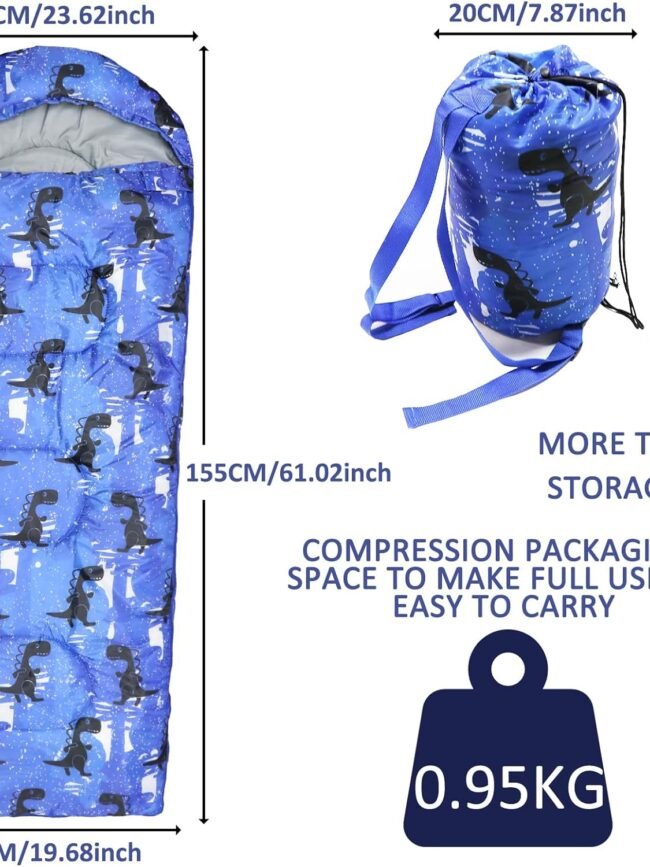 - LIGHTWEIGHT AND COMPACT: outdoor sleeping bags weigh only 2.44lbs, unfold to 66.93” x 25.59”. Just fold it in half and then roll it up, and it can be packed into a backpack measuring 14.96” x 11.81”. The double carrying straps of the teen sleeping bag are meticulously designed with a significantly widened construction to make it more comfortable for your child when carrying the sleeping bag on their back. It's the perfect companion for your child on outdoor adventures or camping