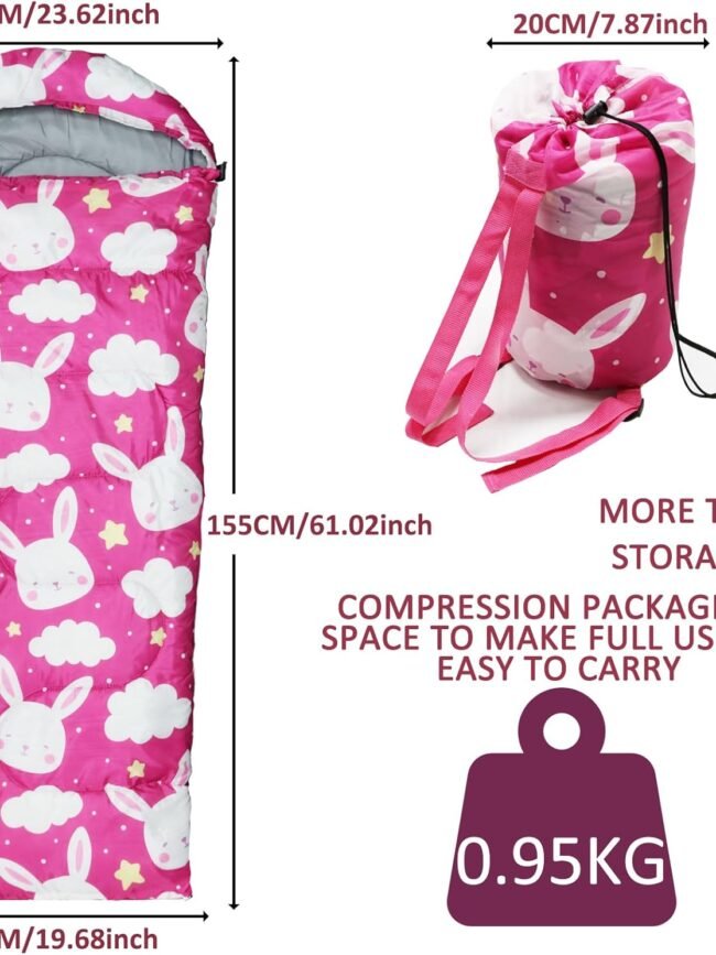 - CAMP IN COMFORT FOR KIDS: Our camping sleeping bags are exquisitely designed with vivid colors. The pink sleeping bag is especially designed as a girls sleeping bag.The compact sleeping bag adopted a hood design. The hood provides additional support and warmth to a child's head. There are drawstrings on the hood, allowing your child to tighten it and stay warm. The children's sleeping bag is equipped with a firm touch fastener, so there is no need to worry about accidental unzipping at night