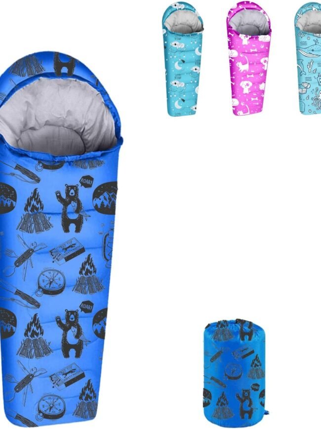 Kids Sleeping Bags – Camping Sleeping Bags with Carry Bag – Compact Sleeping Bag for Hiking, Backpacking 3 Season Warm & Cool Weather, Lightweight Waterproof Outdoor Travel for Boys Girls