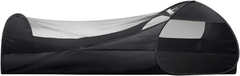 • Upgraded tarp top: This mosquito pop up tent has been upgraded with tarp top on the head part, which can block raindrops and sunshine. You can choose mesh top if you want to enjoy nature when lying inside. The bottom helps isolate from wet or muddy ground